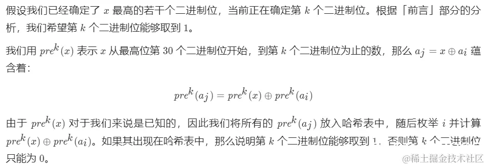 // 如果没有找到满足等式的 a_i 和 a_j,那么 x 的第 k 个二进制位只能为 0