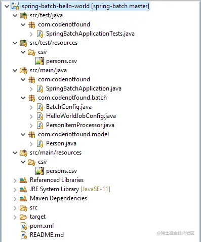 在我的示例中,输入数据存储在 src/test/resources/csv/persons.csv文件中。