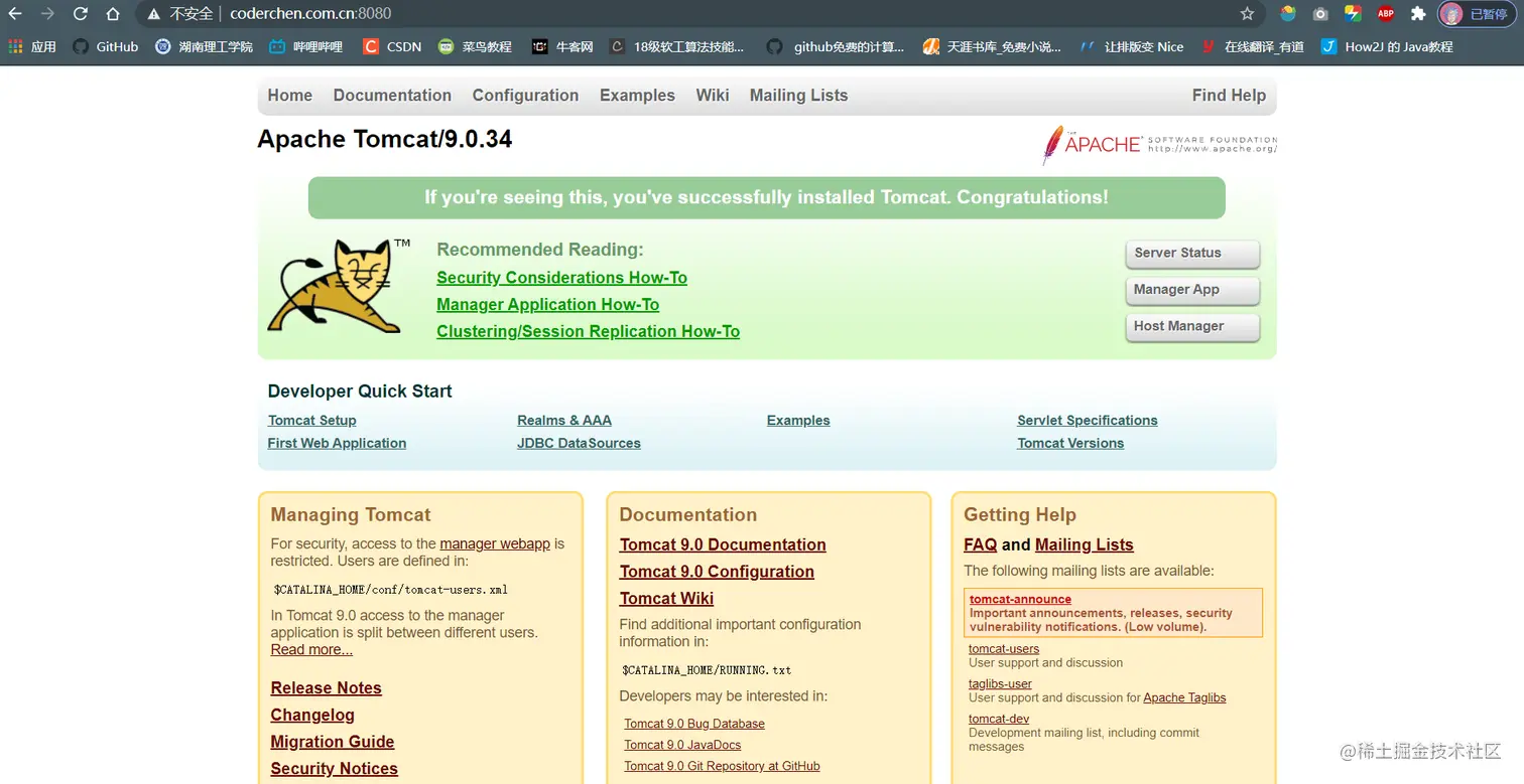 - 进入/usr/local/tomcat/apache-tomcat-9.0.34/bin目录下启动tomcat