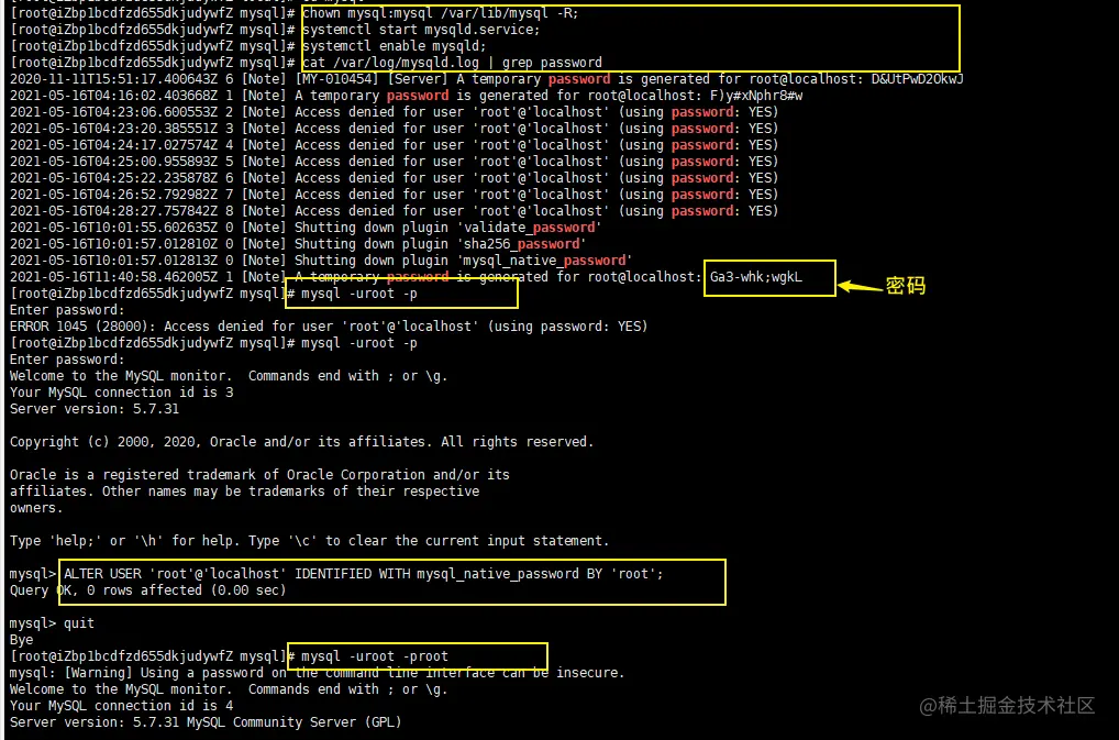 - 查看数据库的初始化密码