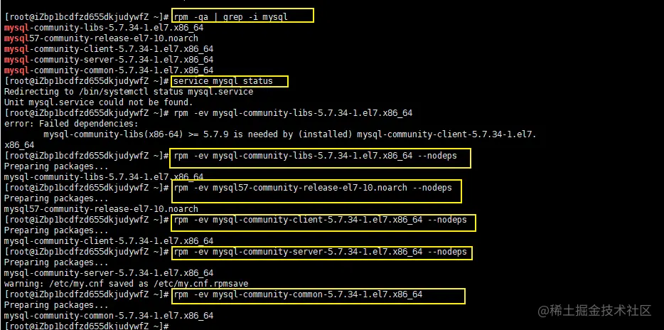 rpm -ev mysql-community-libs-5.7.34-1.el7.x86_64 --nodeps