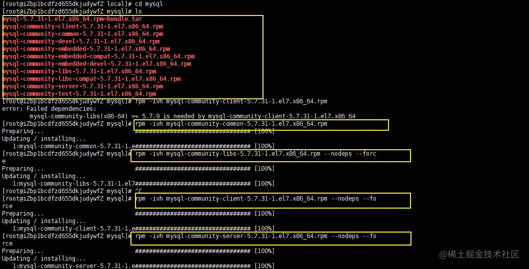 rpm -ivh mysql-community-libs-5.7.31-1.el7.x86_64.rpm --nodeps --force