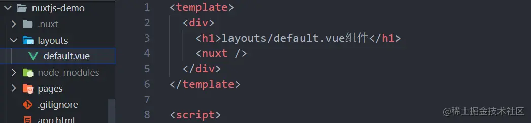 - Nuxt.js 允许你扩展默认的布局,或在 layout 目录下创建自定义的布局