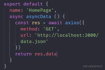 - Nuxt.js 扩展了 Vue.js 增加了一个叫 asyncData 的方法,使得我们可以在设置组件的数据之前能异步获取或处理数据。
