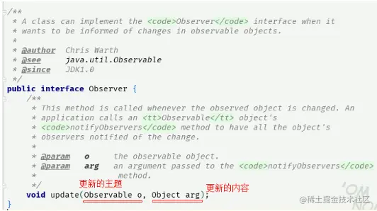 里面只有一个 update 方法,用于接收主题更新后的更新内容。