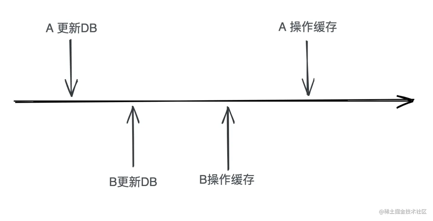 - A请求需要更新数据,先删除对应的缓存,还未更新DB