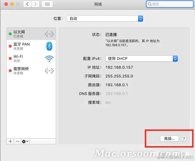 Mac小知识——MAC电脑如何查看IP Mac迪迪卫 2021-05-17 117 阅读1分钟 说说为什么今天会分享这个小知识吧! 因为自己的邮箱今天提醒我有一个账号异地登陆了,显示了一个IP,正好我不知道自己电脑的IP,就说查一下吧,然后就想着把这个小知识跟大家分享一下吧~ 1⃣️打开设置 2⃣️ 找到网络并打开 3⃣️右下角高级点开 4⃣️找到TCP/IP,然后就能看见IP地址啦~ 注意: 这个时候想要直接关闭窗口,会发现只有缩小,没有关闭 不要着急走哦,接着往下看 点击右下角“好” 然后就可以关闭页面啦~ END!非常简单,你学废了吗?