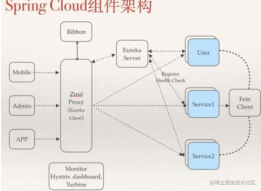 本身是个技术栈, 服务发现——Netflix Eureka 客服端负载均衡——Netflix Ribbon 断路器——Netflix Hystrix 服务网关——Netflix Zuul 分布式配置——Spring Cloud Config