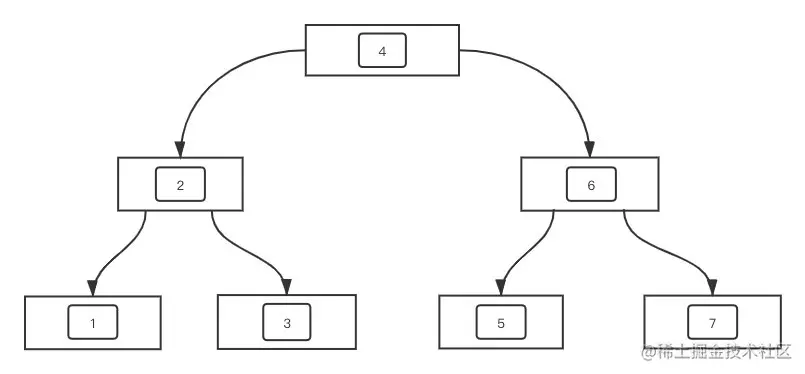 下图是包含了整数「1-7」的B树,这个图应该会帮助你加深对两者区别的理解。