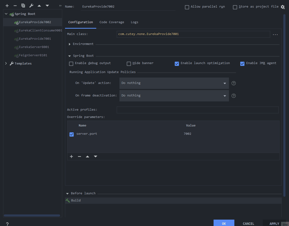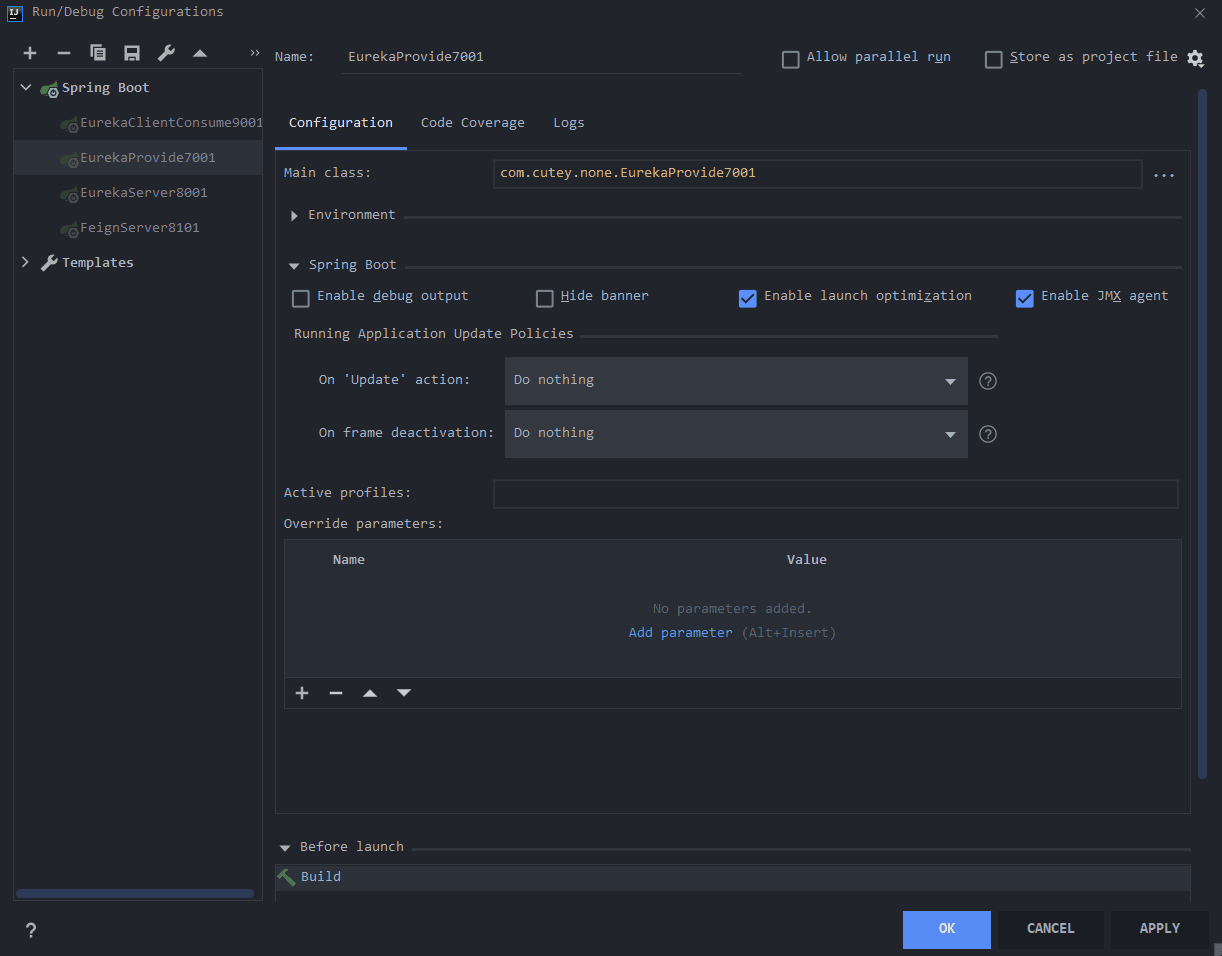 注意我这里的端口是8001,但是eureka默认的端口是8761,这个端口可以自行修改,所以问题不大。
