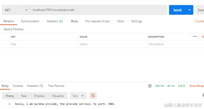 先来看看客户端能否正常地访问业务http://localhost:7001/eureka/provide,肯定是可以的,就是正常的简单的Spring Boot项目