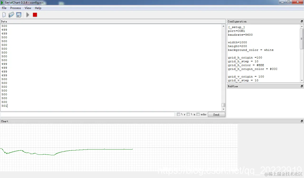 下面通过串口波形显示软件看看采样的温度曲线。