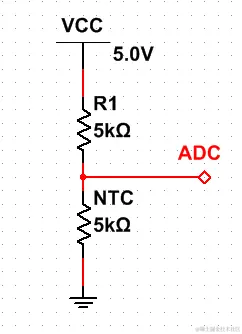 ADC口接单片机AD采样口,通过AD采样功能,读取采样的电压值,然后将电压值、电阻值、温度值三个对应起来,这样就能通过电压值得变化来反应出温度的变化。