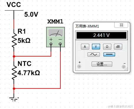 也就是将温度变化转换为电阻阻值变化,通过通过阻值大小就能间接地判断到当前温度值。而读取电阻值实际应用中是很不方便的。如果将电阻值转换为电压值,然后通过单片机AD采样功能,读取电压值。这样相当于间接的读取到了温度值。