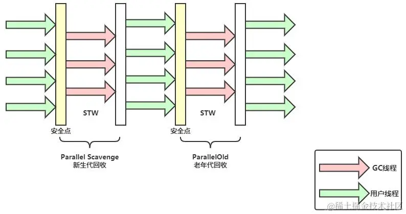 ParNew收集器,是Serial的多线程版本,和Parallel Scavenge收集器类似,使用多线程进行垃圾回收,在垃圾收集时会STW。