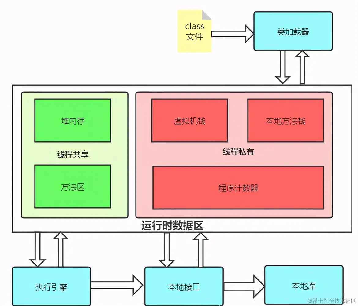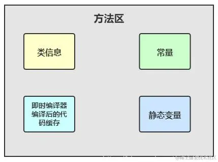 用来保存虚拟机装载的类的结构信息,运行时常量池、字段、方法、方法字节码,是各个线程共享的内存区域。JVM规范把方法区描述为堆的一个逻辑部分,但它有一个别名:非堆(Non-heap), 是为了与堆内存分开