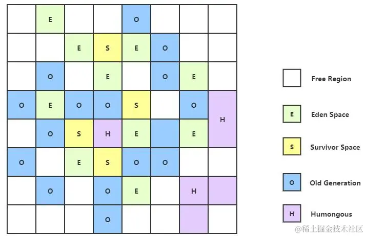 G1还设置了Humongous区域,专门用来存储大对象。在HotSpot中,当对象大小超过Region的1/2时,需要用一个或多个连续的Region存放该对象,这种区域就是Humongous。