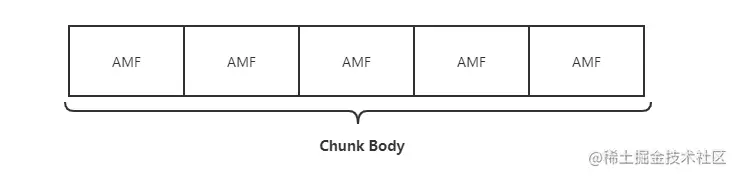 刚才花了很多时间去描述Chunk Header,接下来我们再针对Chunk Body进行简单的描述。与Chunk Header相比,Chunk Body就比较简单,没有那么多变长的控制,结构也比较简单,这个里面的数据也就是真正有业务含义的数据,长度默认是128个字节(可以通过 set chunk size 命令协商更改)。里面的数据包组织格式一般是AMF或者FLV格式的音视频数据(不含FLV TAG头)。AMF组织结构的数据组成如下图所示,FLV格式本文不做深入描述,感兴趣的话可以阅读 FLV 官方文档。