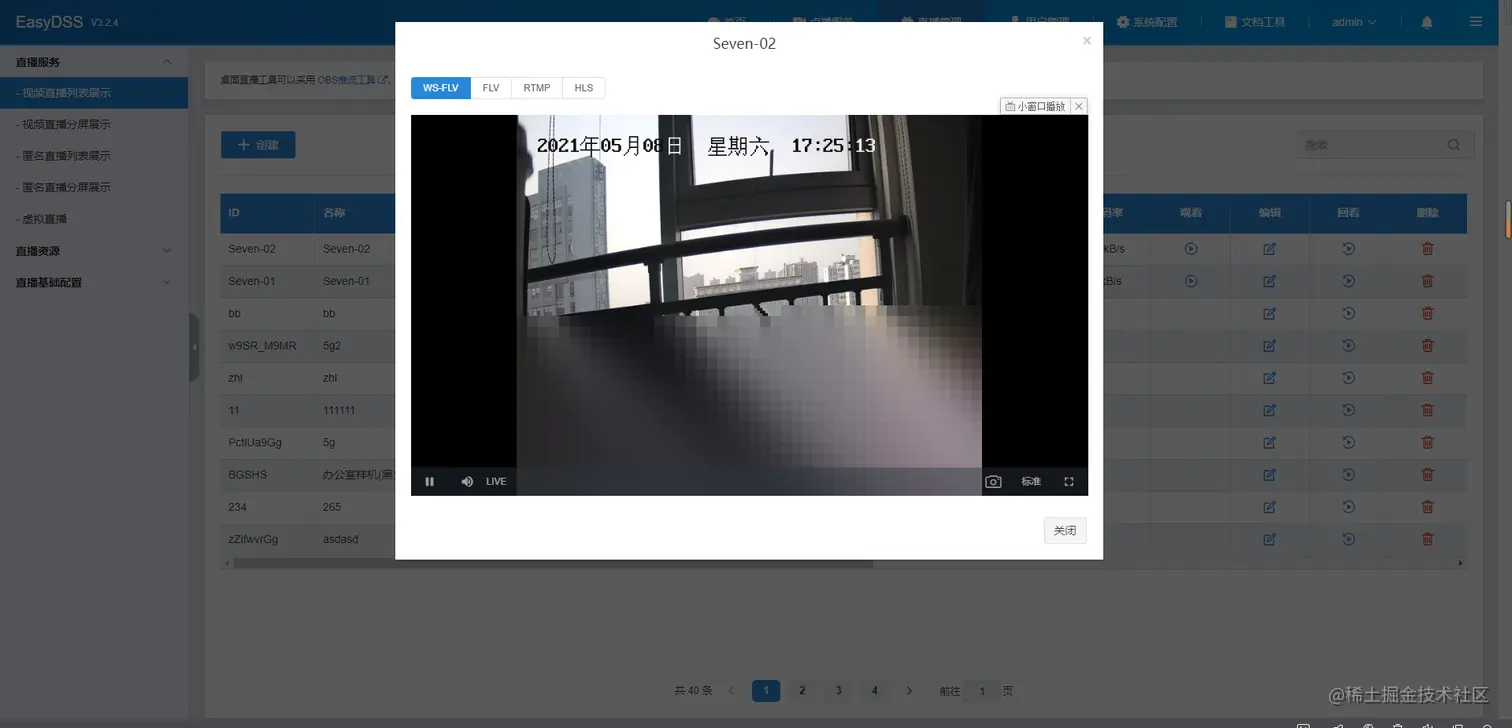 然后我们在EasyDSS流媒体服务器上再看看播放效果,明显没有花屏。