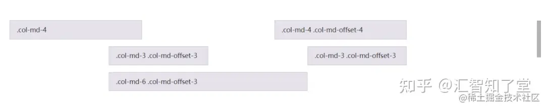 使用 .col-md-offset-* 类可以将列向右侧偏移。这些类实际是通过使用 * 选择器为当前元素增加了左侧的边距(margin)。例如,.col-md-offset-4 类将 .col-md-4 元素向右侧偏移了4个列(column)的宽度。