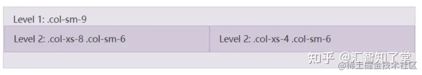 为了使用内置的栅格系统将内容再次嵌套,可以通过添加一个新的 .row 元素和一系列 .col-sm-* 元素到已经存在的 .col-sm-* 元素内。被嵌套的行(row)所包含的列(column)的个数不能超过12(其实,没有要求你必须占满12列)。