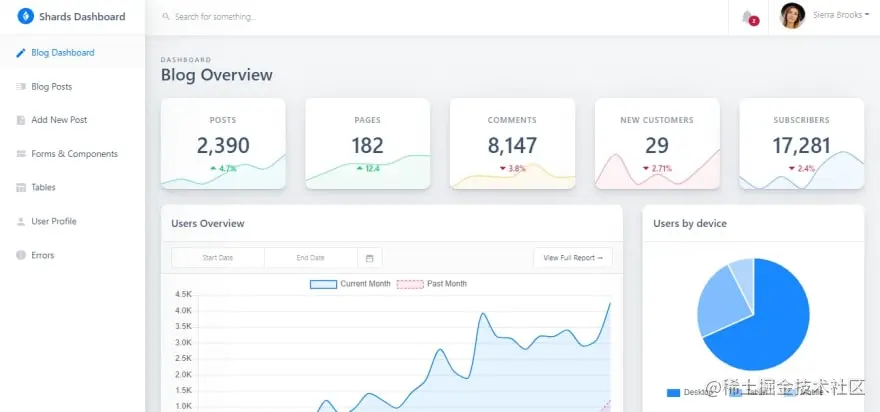 Shards Dashboard Lite 是一个免费的反应管理仪表板模板包具有现代化的设计系统和许多自定义模板和组件。它是完全响应的,性能良好的,并遵循所有的最佳实践。