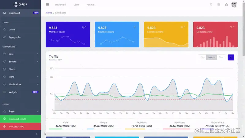 这是一个很酷的 React 仪表盘模板,使用 Redux 和 Bootstrap 4制作。下面是它的一些特性: Code splitting,suspense, lazyload, different color styles等等。
