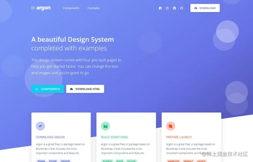 Argon Design System 由超过100个独立部件组成,你可以自由选择和组合。它提供了预先构建的示例,这将有助于确保开发过程是无缝的。有趣的是,所有组件在颜色上都可以有所不同。