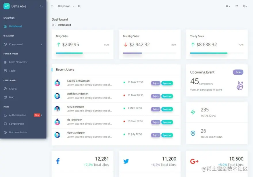 NextJS Material Dashboard 是一个免费的 Material-UI、 NextJS 和 React Admin,其新颖的设计灵感来自谷歌的 Material Design。它是完全编码的,包括插件、元素、 SASS 文件等等。