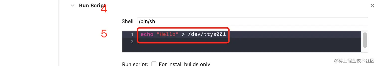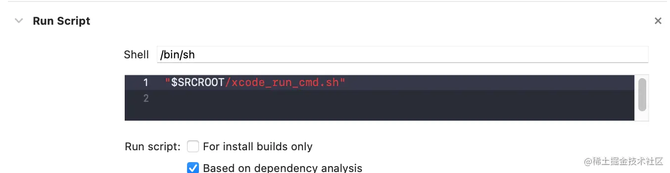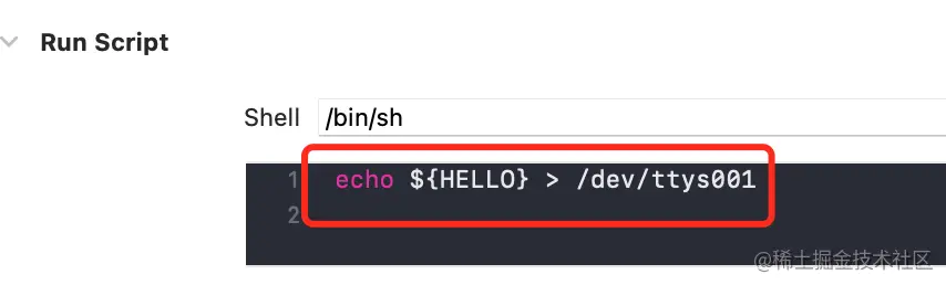 2.在Xcode执行脚本的位置添加红框中的命令,并定位到终点输出