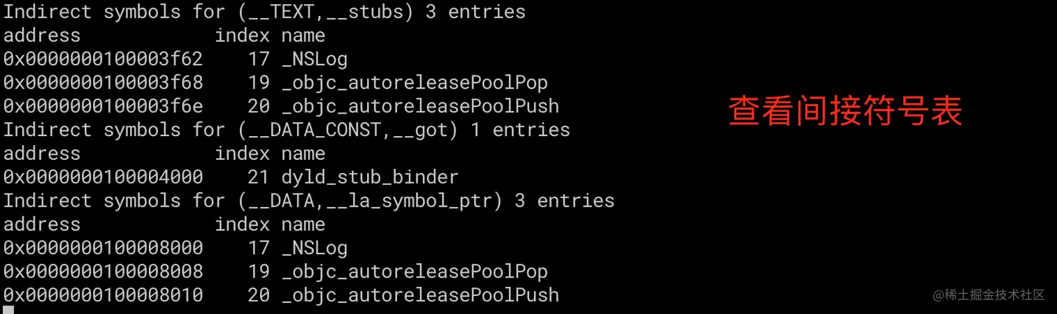 // 查看间接符号表
