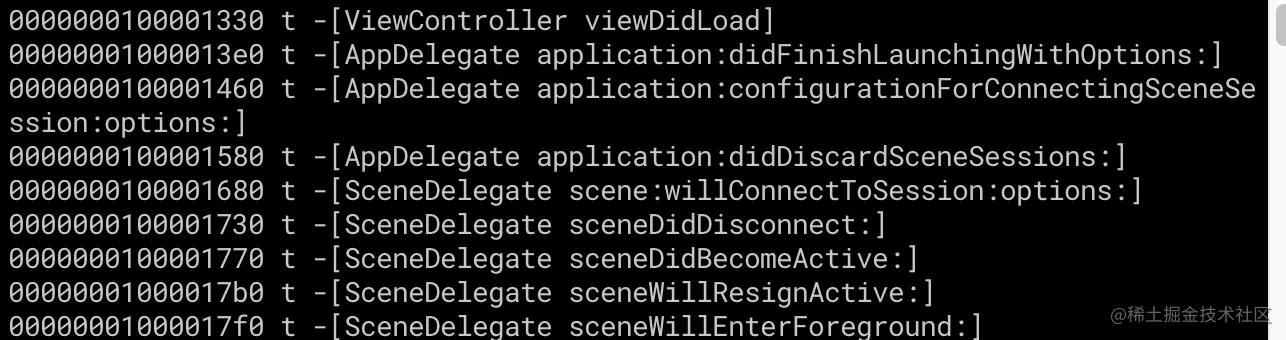 在看导出符号已经没刚才的OC符号了