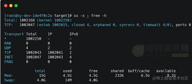 连接数(百万级)与内存使用情况如下图所示: