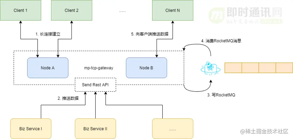 - 2)与业务解耦:将业务逻辑与长连接通信分离,使业务系统不再关心通信细节,也避免了重复开发,浪费研发成本;