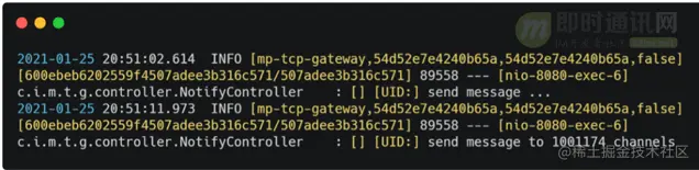 给百万个长连接同时发送一条消息,采用单线程发送,服务器发送完成的平均耗时在10s左右,如下图所示。