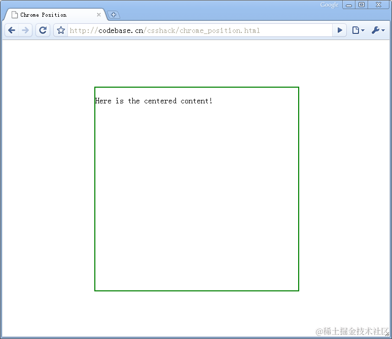 这样,在FF3、IE6/7中都能,很好的实现水平和垂直居中,而在chrome中,出现了问题。