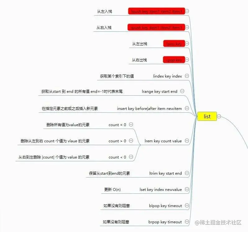 - lindex key index 获取指定索引的元素 O(n)谨慎使用