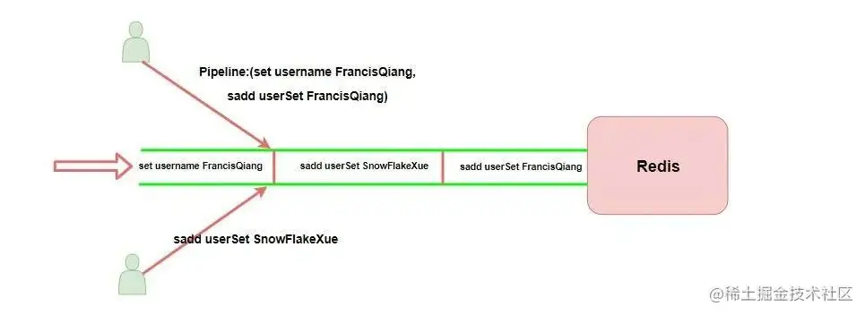 我们可以简单理解为 Redis中的事务只是比 Pipeline多了个原子性操作,也就是不会被其他命令给分割,如上图。
