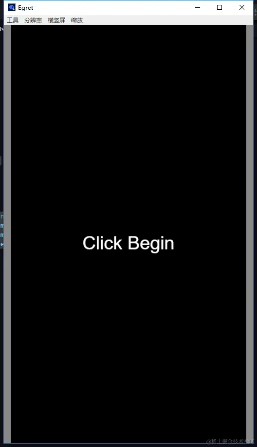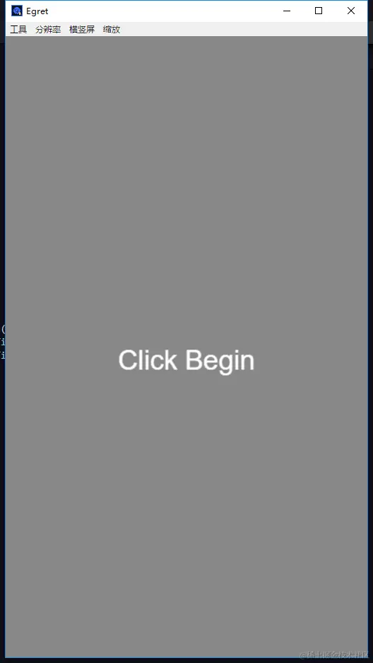 然后点击Wing的调试按钮,这时候不出意外的话,模拟器中间上就会显示出Click Begin的字,(如果使用Chrome调试的话,那么最好切换到手机模式)
