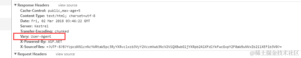 关于vary在Http响应头的作用就是:告诉缓存服务器或者CDN,我还是同一个浏览器的请求,你给我缓存就行了,如果你换个浏览器去请求,那么vary的值肯定为空,那么缓存服务器就会认为你是一个新的请求,就会去读取最新的数据给浏览器