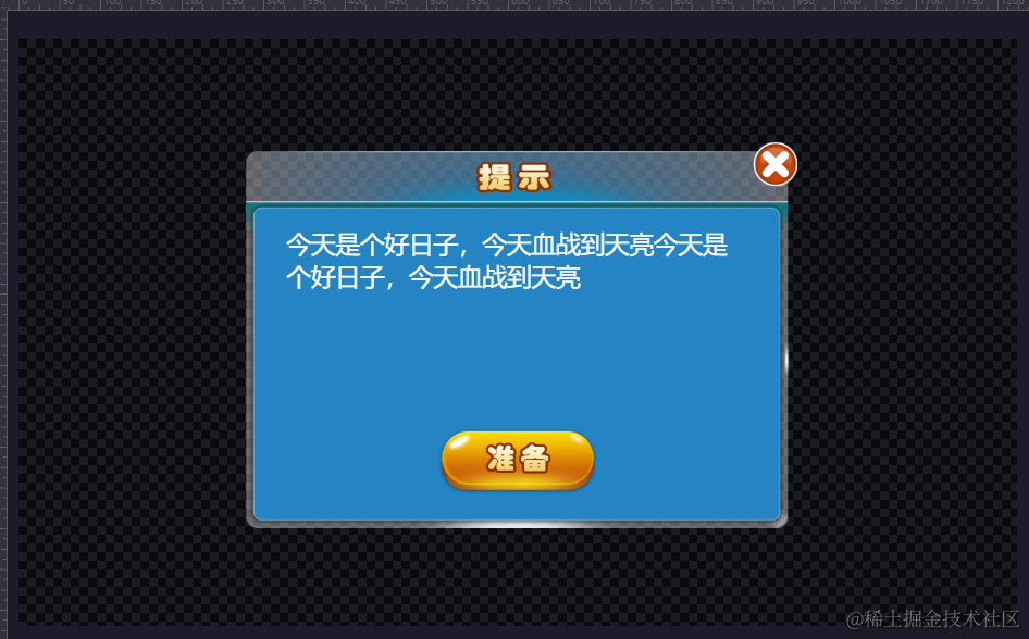 因为本项目使用的是EUI,EUI提供了一个Panel和Button控件,我大致看了一下Panel控件,感觉不太喜欢。我个人更喜欢模态框的那种风格,可能是因为我本质工作是做web开发的吧。。。