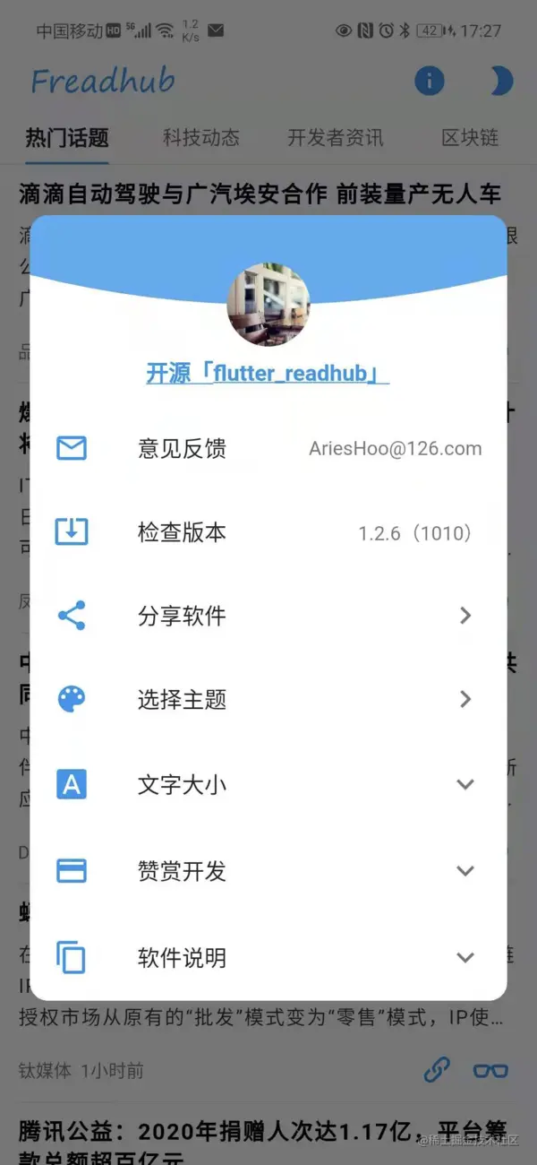 Freadhub没有第一时间升级,但是也在4月进行了Flutter 2.0及空安全的升级并在 2021-04-12 发布了 1.2.4版本,后期陆陆续续做了一些小调整,直到最近 公司的项目做了个卡片分享的功能,效果还不错就同步移植,在此做一个简单的记录。---当前最新版本1.3.0