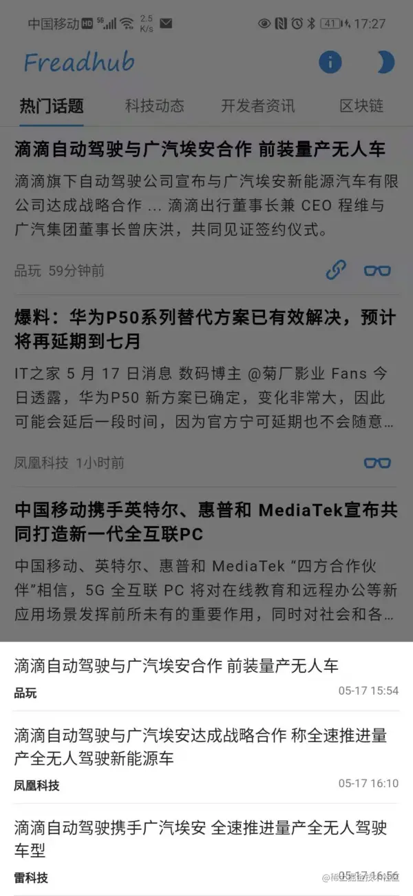 | Freadhub卡片 | Freadhub卡片-深色模式 |