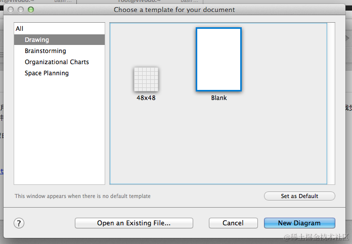 启动 OmniGraffle 后,可以选择模板,这里选择空白模板。