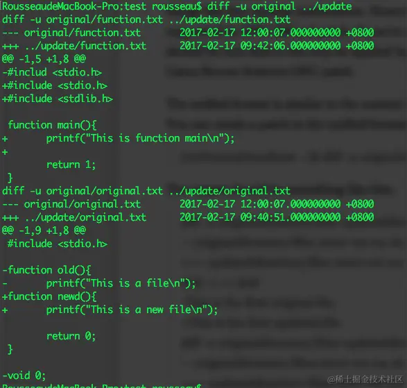 RousseaudeMacBook-Pro:diff rousseau$ diff -c original update