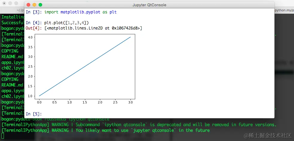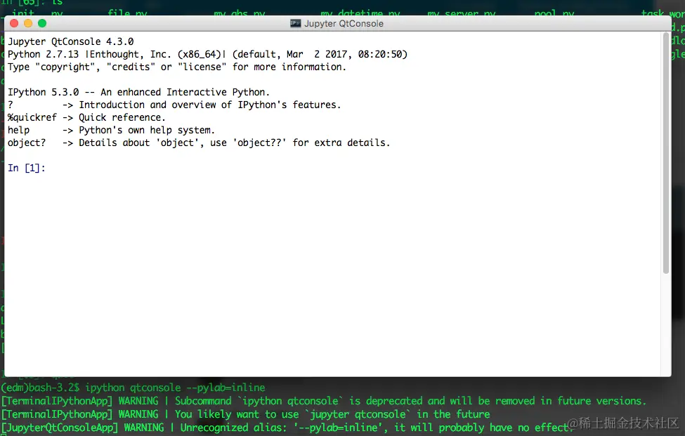 IPython支持给予Qt框架的GUI控制台,如下图所示。如果需要交互环境,需要安装PyQt5。