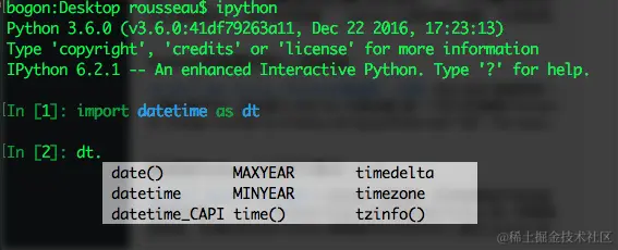 在IPython的界面中,按Tab键可以做很多工作,如果执行Shell命令,tab可以补齐文件名,如果是Python代码,可以补齐变量名,用.之后,可以提示对象包含的属性和方法。