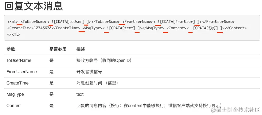 最后认真学习了其它网友的方案,才发现官方文档上提供的XML格式有问题,稍微修改后就可以正常的收到自定义的被动消息回复了,如果有和我类似情况的朋友,一定要注意下面XML格式啊。
