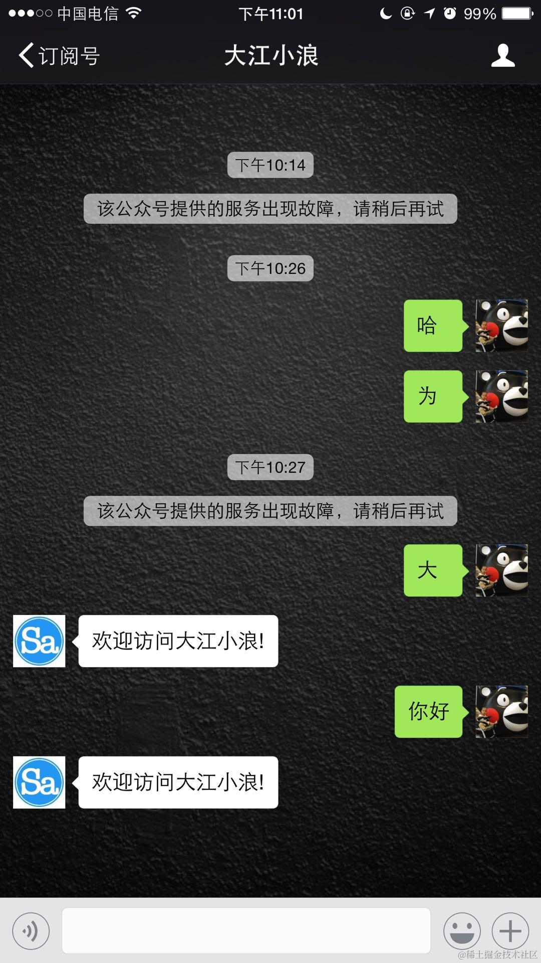 3、微信开发被动回复消息:该公众号暂时无法提供服务,请稍后再试