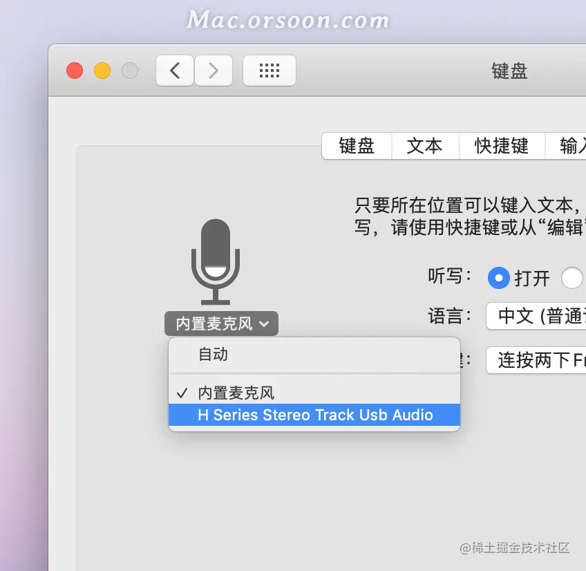 默认使用的是 Mac 内置麦克风采集语音,如果你外接了其他麦克风,也可以选择其他麦克风。